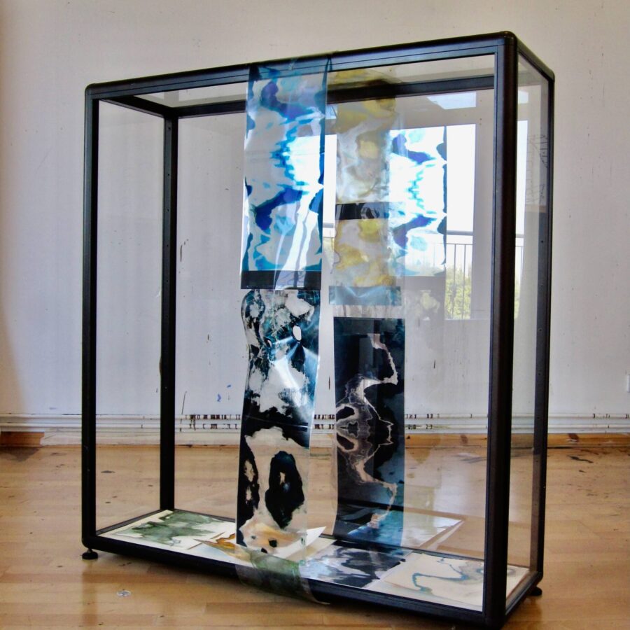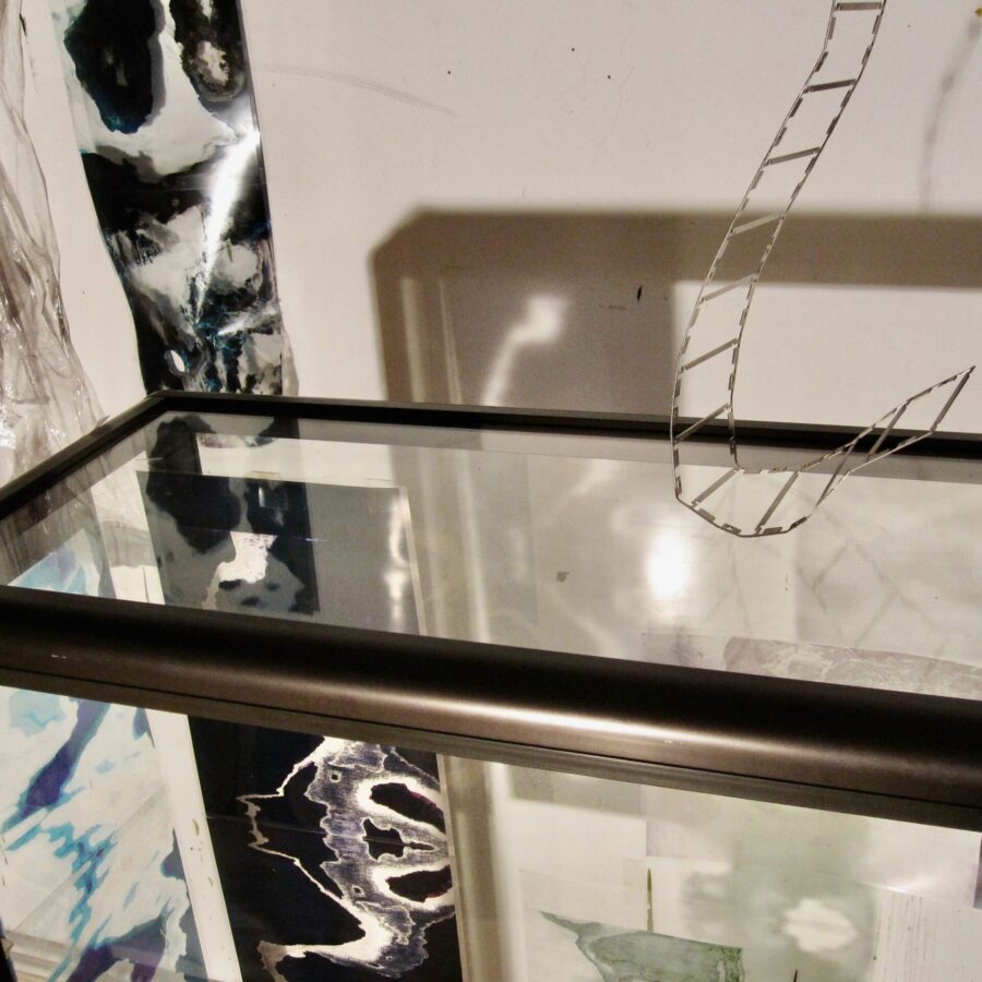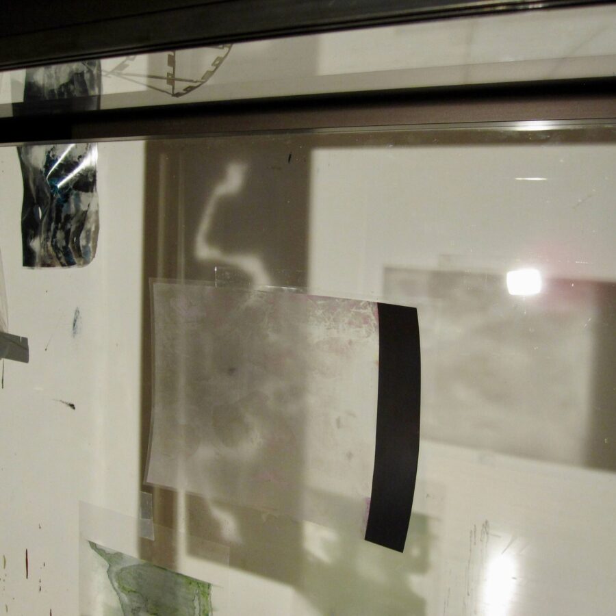multi media installation (glass showcase, foil,